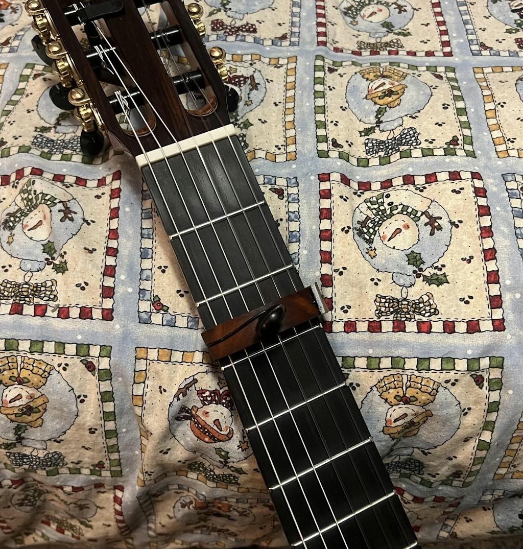 The capo is nicely made but for me, somewhat difficult to use. And I would never try to use it live since the capo is not one piece, but rather several pieces...with the foot on the footstool and guitar in playing position, I find it difficult to place and tighten. On my Cordoba, it does not seem to press the high E string down, so it is muffled (works well on my other classical nylon guitars). The violin tuning key is pretty, but it is not threaded, but rather a traditional friction fit. So when you loosen it, it pops out. Getting it back and secured while holding the guitar in playing position is just too much trouble. And loosening it to slide to another position, well, just a pain. Also, for $30, there just is not much there. A tiny piece of wood, nylon line, piece of leather, neoprene strip, and a tuning peg. So I am disappointed. $30 spent on an item I will never use.