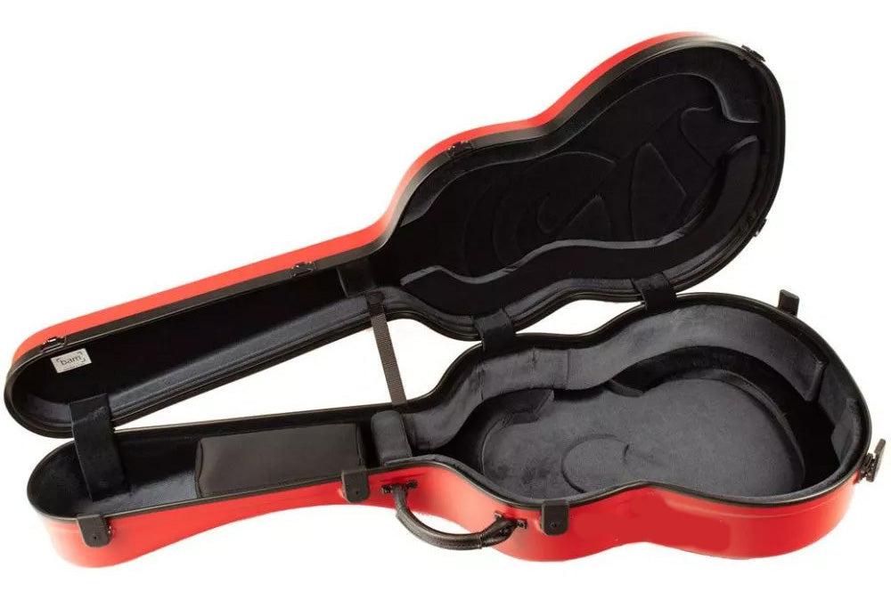 The Alhambra guitar case ICONIC is a classical guitar case the result of a collaboration between Alhambra and the French guitar case manufacturer BAM. This guitar case seeks the best protection for the guitar, with injected foam cushions and a highly protective outer shell with the Alhambra logo embossed in passion red. Weight 4.2 kg. Carry straps included. 4mm thick grained ABS providing great protection against shocks. 5 soft locks with BAM logo. Male/female airtight seal. Side handle. Anti-slip and anti-wear rubber patches on the bottom outer shell. 4 rubber feet. 1 removable accessory pouch. 1 pair of straps with secured carabiners to carry the case as a backpack. Suspension of the instrument on injected foam cushions.