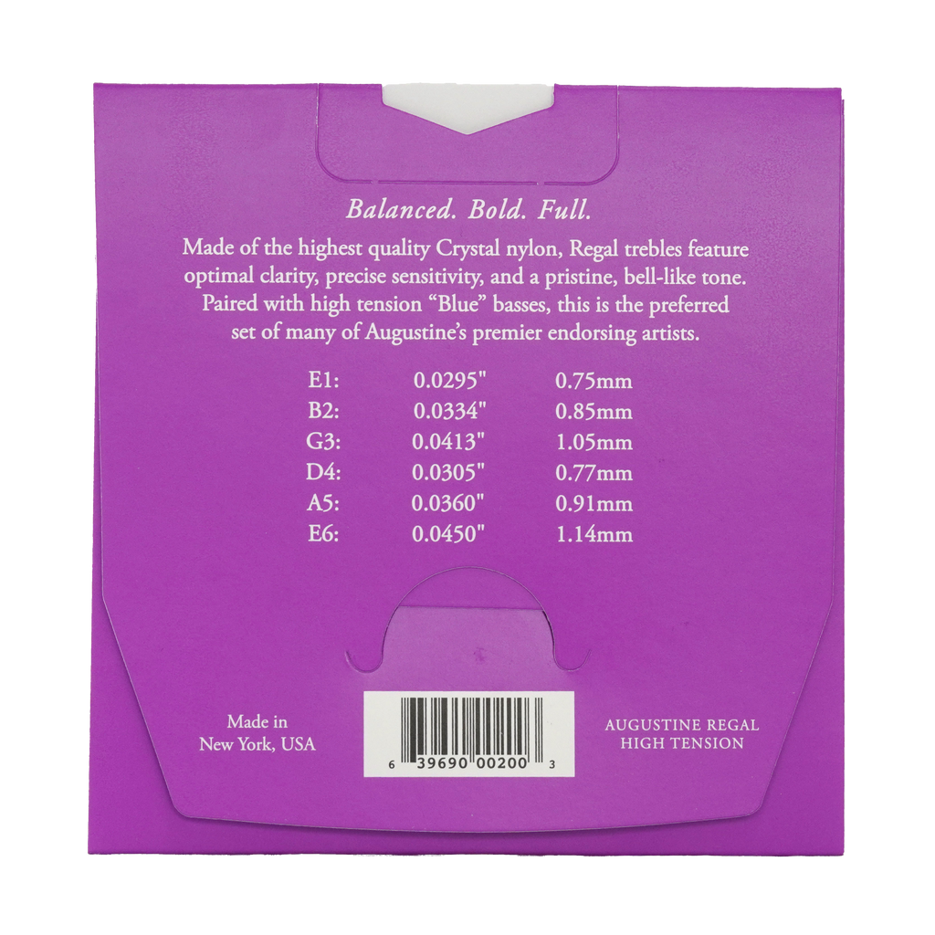 Made of the highest quality Crystal nylon, Regal trebles feature optimal clarity, precise sensitivity, and a pristine, bell-like tone. Paired with high tension "Blue" basses, this is the preferred set of many of Augustine's premier endorsing artists.