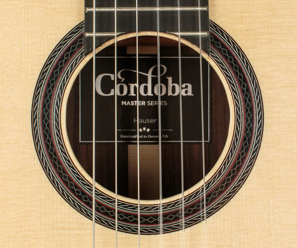 Cordoba obtained a 1937 Hauser model in order to study it inside and out, and play it over and over. The mission was to understand the essence of what gives this iconic guitar such an amazing voice and feel, and then recreate an instrument that possesses these characteristics and carries the same magic in its DNA. The process was a combination of science and feel; the wood thicknesses of the top, backs, sides, and braces were measured to the nearest hundredth of a millimeter, bracing patterns traced and mapped, and details of the materials, inlays, wood grains, and vibrations were all carefully analyzed. The guitar was played and listened to for hours to gain an understanding of the balance between the trebles and basses, resonance of the top, and a sense for the feel and response of the guitar when played in a variety of styles and environments.
