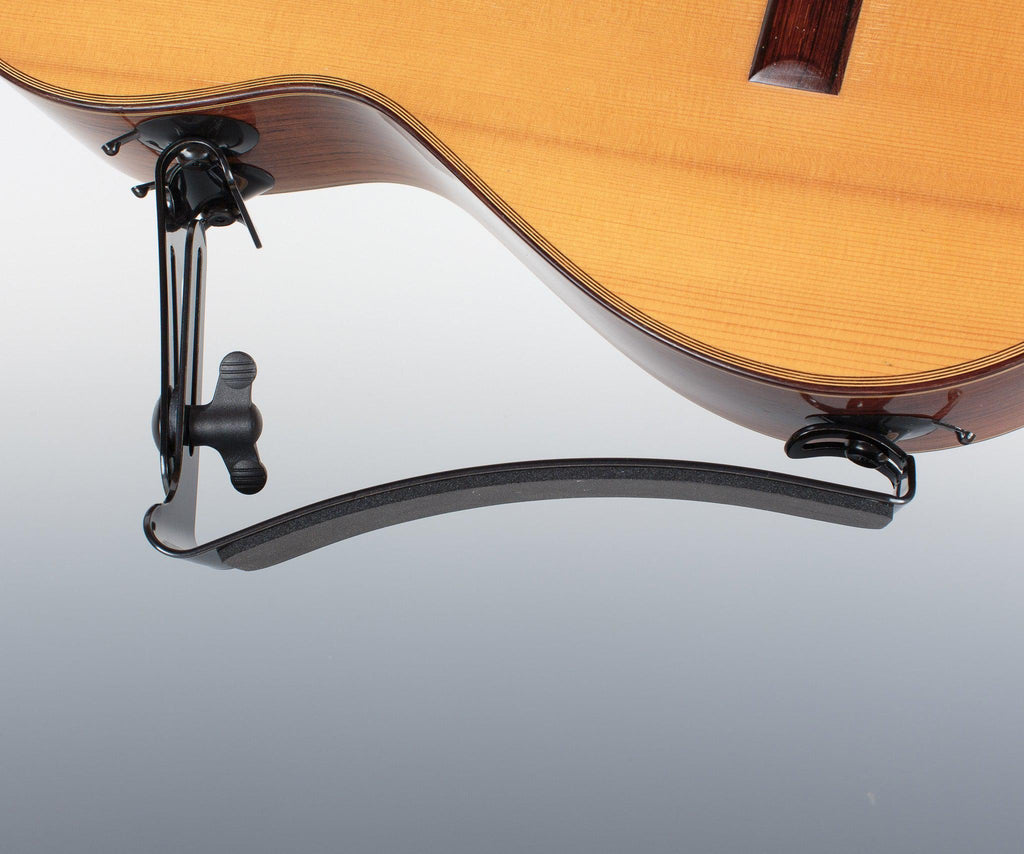 The Tappert is an improvement to the Professional model by adding the ability to adjust the angle of the suction cups to match the curve of the guitar body. This helps keep the support firmly attached to the guitar. The Tappert requires less width to fit on the guitar and also has a higher maximum position than the professional.
