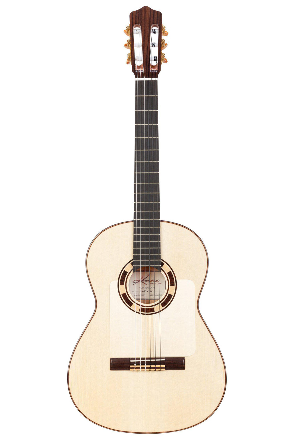 Solid Cypress back and sides; solid European spruce top; gloss finish; Honduras cedar neck (shallow/flat angle-to-body); Indian ebony fingerboard; Indian rosewood bridge; bone nut and saddle; wood binding and rosette; gold brass stand- alone machines with amber buttons; crystal clear golpeador (tap plate); 650 mm scale length; 52 mm neck width at nut; Kremona Arete strings; CGHC deluxe hard case included.